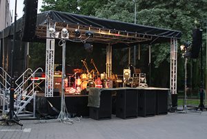 SCENA MOBILNA (7,5mx6m). Scena firmy „ALSPAW” posiada wszystkie wymagane certyfikaty. Ta estrada to profesjonalne zadaszenie przystosowane do występów scenicznych. Została zaprojektowana głównie z myślą o branży rozrywkowej. Stanowi Idealne rozwiązanie dla masowych imprez, od małych spotkań po duże koncerty.